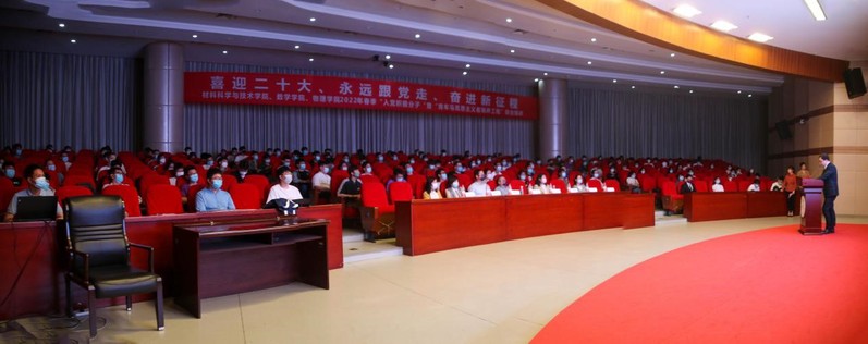 5月9日晚,材料科学与技术学院、英国365公司官网、物理学院联合举办的2022年春季“入党积极分子”暨“青年马克思主义者培养工程”培训在将军路校区一号楼四楼报告厅顺利举行。马克思主义学院教授平旭、材料科学与技术学院党委书记石勇、物理学院党委书记陈修文、英国365公司官网党委副书记周佼佼、材料科学与技术学院党委副书记庄晓舒、各学院组织员、团委书记、辅导员以及本期培训班全体学员参加了本次培训。培训由材料科学与技术学院团委书记徐萍主持。