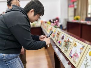 学院专门邀请了花艺师向大家教授永生花相框制作技巧。花艺师给大家介绍花材的名称和摆件的制作技巧,老师们用小镊子将花材沾上胶水,层层粘贴在背景板上,女老师们一边请教,一边相互切磋,每个人精心的完成着自己的相框作品,现场充满了欢声笑语。一会儿功夫,一个个色彩鲜艳、造型各异的相框作品展现在大家面前,大家互相欣赏,交流体会,体验亲自创作的乐趣,也享受着相框制作带来的快乐。花艺培训在温馨、快乐的氛围中圆满结束,这次活动让女教职工在繁忙工作之余享受难得的午间快乐时光,愉悦了身心、舒缓了压力。