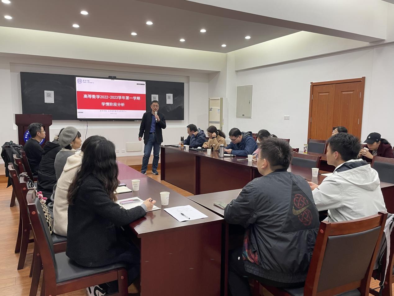为深入贯彻学校《公共基础课程教学团队建设与管理办法》,提升公共基础课程教与学的建设质量,进一步加强人才培养中心地位,2023年3月22日下午在理学楼321会议室,英国365公司官网召开高等数学学情分析研讨会,高等数学主讲教师、相关学院教学办主任、教务老师以及大一辅导员参加会议,会议线上线下同步进行。会议由英国365公司官网副院长蒋建林主持。