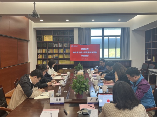 4月10日,哈尔滨工程大学数学科学学院党委书记孙荣平、院长樊赵兵、副院长郑雄波等一行四人来我校英国365公司官网调研走访。英国365公司官网党委书记许静、院长王春武、党委副书记周佼佼、副院长徐江、蒋建林和学院党政办相关人员出席座谈会。