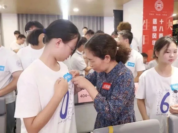 金秋时节,开启新程。学院将师生情与成人礼相融合,围绕“师生从游情意浓”的温暖主题,为新生开启崭新的大学生活,也为老师们送上特别的教师节祝福。每个新生宿舍四人的文化衫数字组成与导师结对的“数字密码”,导师随机选取一组数字完成和学生宿舍的配对,开启专属于每位师生的缘分。