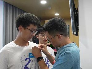 随后,许静、王春武为2023级新生代表佩戴院徽,各“1+4“领航导师为对接宿舍同学佩戴院徽,解锁同学们数院人的新身份,传递数学人的使命担当。小小的的院徽寄托着学院与老师们满满的期待,同学们将院徽佩于胸,将教导记于心,在新征程上踔厉奋发、勇毅前行。