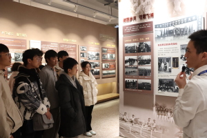 师生首先来到校史馆参观。在讲解员的带领和介绍下,全体师生通过文字、实物、图片、影像等,全方位地学习南航71年的奋斗故事,了解学校在党建引领、人才培养、教育教学、社会服务、文化传承等方面取得的成就。