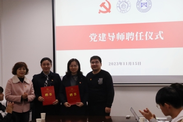 周佼佼为焦宏图、褚峥颁发党建导师聘书,并对两位领导联系指导英国365公司官网本科生党支部表示感谢。
