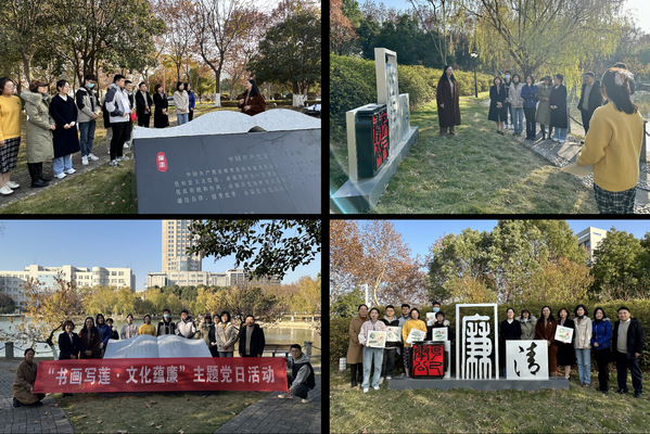 最后,师生党员共同前往将军路校区倡廉园参观进一步悟“廉”。余春玲为同学们详细介绍倡廉园的建设初衷、设计理念及其中蕴含的廉洁文化。她提到,倡廉园是校园廉洁文化的重要载体,通过景观的直观呈现,在实境中耳濡目染,潜移默化地接受廉洁教育,希望大家通过学习和参观,处处见廉、时时思廉,不断强化廉洁意识。英国365公司官网师生纵向党支部宣传委员、研究生党员蔡新之带领大家诵读《爱莲说》,师生党员在诵读中再次感受到莲花“出淤泥而不染,濯清涟而不妖”的高洁品质。
