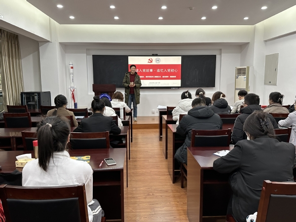 答辩结束后,倪勤老师对预备党员们的答辩进行了简要点评,并讲授党课。他深情追忆道,自己是在76年入党,至今已经47年了。一些具体细节记不太清楚,但对非常光荣的记忆很深刻。他提到,“党员”不仅是组织的认可,更饱含群众的信任,“那时候介绍对象,如果是党员,会让人很放心,是一个很大的加分项呢”,小事例生动体现了党员身份的光荣和承担的信任责任。谈到支部学习,他提到,当年没有网络,也基本没有电子形式材料,主要是通过层层转达来学习。有一次自己作为支部书记手写抄录文件精神、然后回支部带领党员们进行学习,虽然过去了四十余年,仍历历在目。他提到,时代不同了,但是党员的光荣使命没有变,希望年轻的同学们牢记入党初心,加强对党史的学习,党走到今天极为不易,只有深入了解党的光辉历程,才能真正感受到党的伟大精神;增强服务意识,党员要多把群众放心里,多多关心身边同学的需求和困难,积极为他们提供帮助和服务;多发挥先锋模范作用,同学们不光要自己优秀,还要以身作则,带动身边同学努力向上、奋发有为。