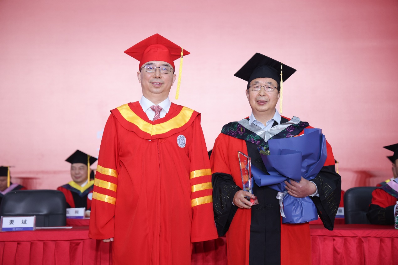 4月2号下午,2024届研究生毕业典礼暨学位授予仪式上对获奖导师进行颁奖。获奖导师们在全体师生的见证下,满载着莘莘学子最真诚的祝福与崇高的敬意走过红毯,校长姜斌为获奖导师颁发证书。