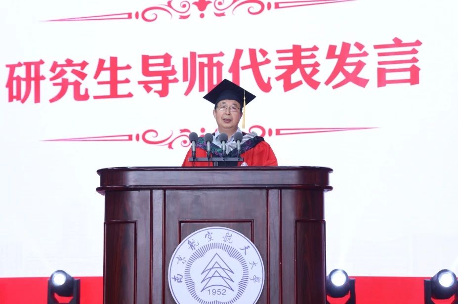 典礼上,赵洪涌教授作为研究生导师代表发言。他以数学家的严谨和教育者的温情,结合“感恩、乐观和诚信”三种人生态度,分享了自己在近三十年教书育人过程中的感悟与坚持,寄语全体毕业生:心怀感恩,坚定前行;乐观向上,传递正能量;诚实守信,踏实做事。鼓励毕业生们脚踏实地坚定前行,扬帆起航去书写人生新的篇章。