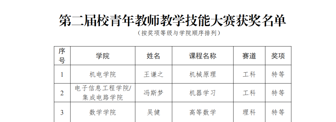 近日,英国365公司官网第二届青年教师教学技能大赛获奖名单公布。经个人申报、学院推荐、校级预赛、校级初赛、现场决赛等各阶段评审,365官网吴健老师的《高等数学》课程荣获特等奖。