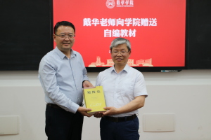 戴华老师向学院赠送自编教材《矩阵论》,并发表了荣休感言。戴华老师深情回顾了自己30余年的教师职业生涯,分享了自己的从教经历,他对青年教师们殷殷叮嘱,要言必行,行必果,做学生们的榜样,言传身教是一名好教师的基本素养。同时,戴华老师表示,退休后将一如既往地关注学院发展,尽己所能,发挥余热。