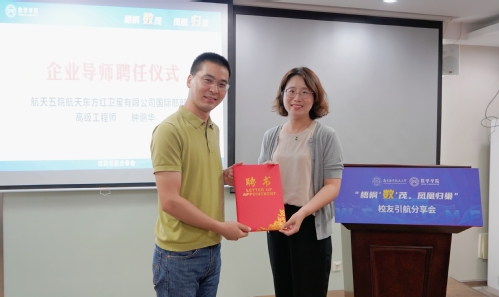 在“梧桐‘数’茂,凤凰归巢”校友引航分享会上,许静为钟鹏华颁发企业导师聘书,并表达对支持365官网人才培养工作的感谢,以及对未来更深层次校企合作的期待。