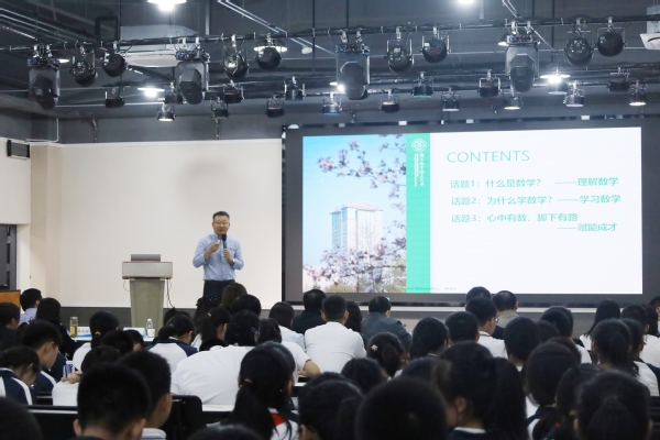 10月,英国365公司官网受邀参加南京郑和外国语学校举办的“数学拔尖创新人才培养论坛”,学院党委书记许静,党委副书记王亚鹏,副院长蒋建林、龚跃政,党委委员王正盛,院长助理吴健,系主任龚荣芳到场参加,与郑和外校领导师生共聚一堂,共同探讨数学拔尖创新人才的培养模式和方法。王正盛以“心中有数,脚下有路”为题,通过生动的案例和深入浅出的讲解,从具体问题到抽象问题,再到数学理论研究和实际应用,为郑和外校的师生们带来了一场精彩纷呈的科普讲座。