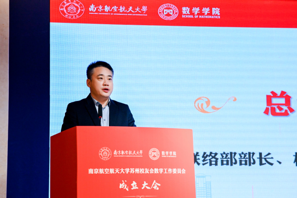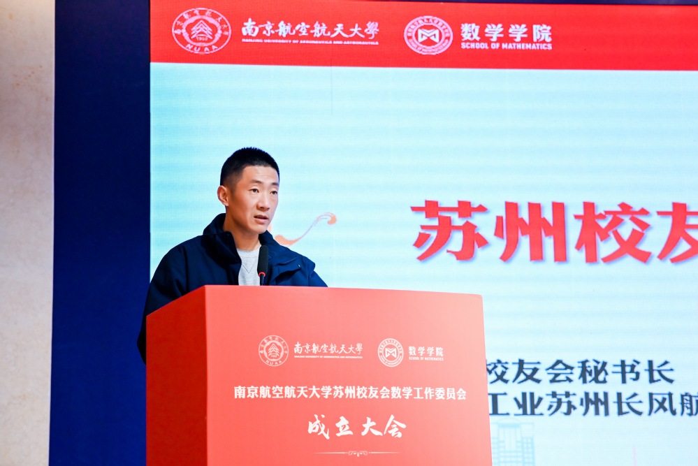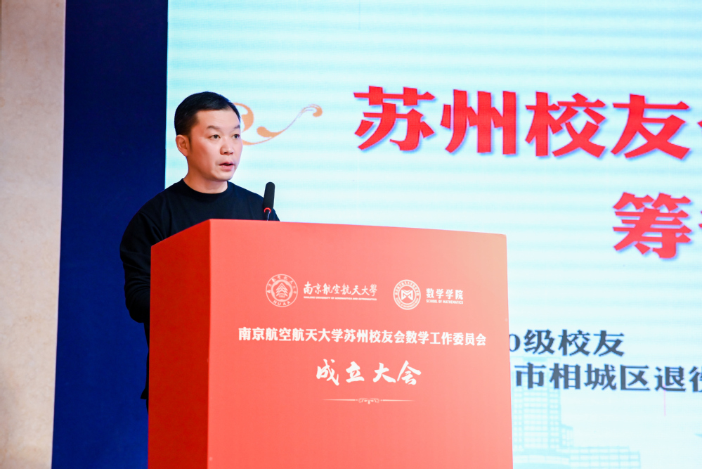 学院2000级校友、苏州相城区退役军人事务局副局长谢景超代表苏州校友会数学工作委员会筹备工作组作筹备工作报告。唐靖华宣读苏州校友会数学工作委员会首届理事会名单。