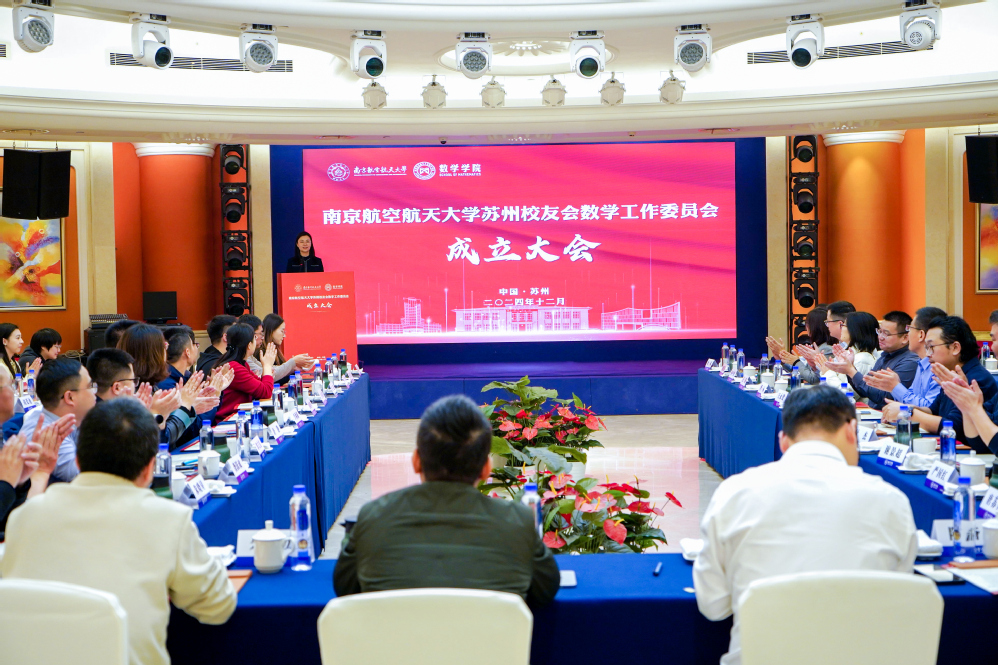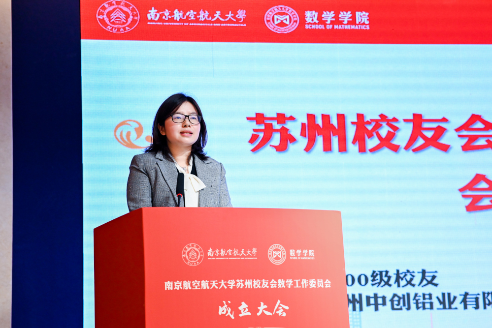 周晓英代表首届理事会讲话。她深情回顾校园岁月,对母校母院的培养、苏州校友会的关心支持表示衷心感谢,她表态,将与委员会其他校友一起发挥好桥梁纽带作用,让每一个在苏州的南航数学人都能感受到温暖和力量,同时创造更多发展机遇,服务校友的成长和母校的发展。唐靖华在致辞中对苏州校友会数学工作委员会的成立表示热烈祝贺,希望苏州校友会数学工作委员会可以成为校友们沟通互动、共同成长的温馨家园,希望校友们在各自事业中取得更大成就,共同为母校的发展贡献力量。