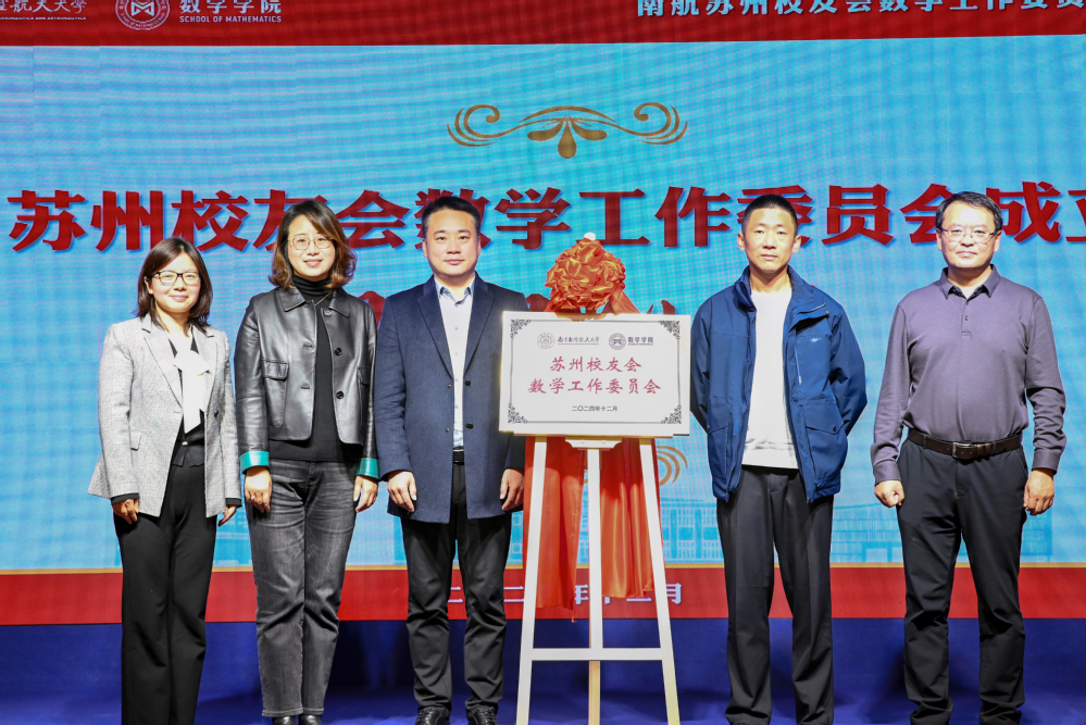随后进行苏州校友会数学工作委员会成立仪式。李和新、唐靖华、许静、王春武、周晓英共同为苏州校友会数学工作委员会揭牌。