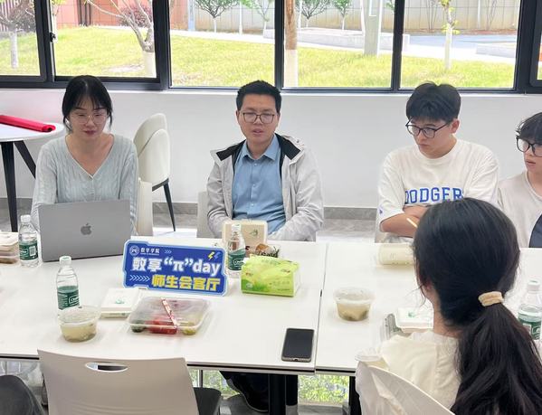 为进一步强化学风建设,凝聚班级合力,4月9日,英国365公司官网在天目湖校区一站式学生社区举办数享“π”day——班级学风建设交流会。学院院长助理潘茂东,辅导员赵美婷,2024级信息与计算科学专业1班、2班班委共同参与本次活动。