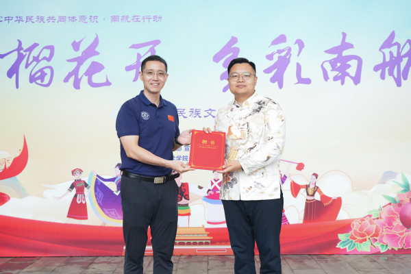 来自各个民族的学生代表们被聘任为民族文化传承使者,未来,他们将成为校园内传播民族文化、促进民族团结的青春力量。许静、王春武为学生代表颁发聘书。