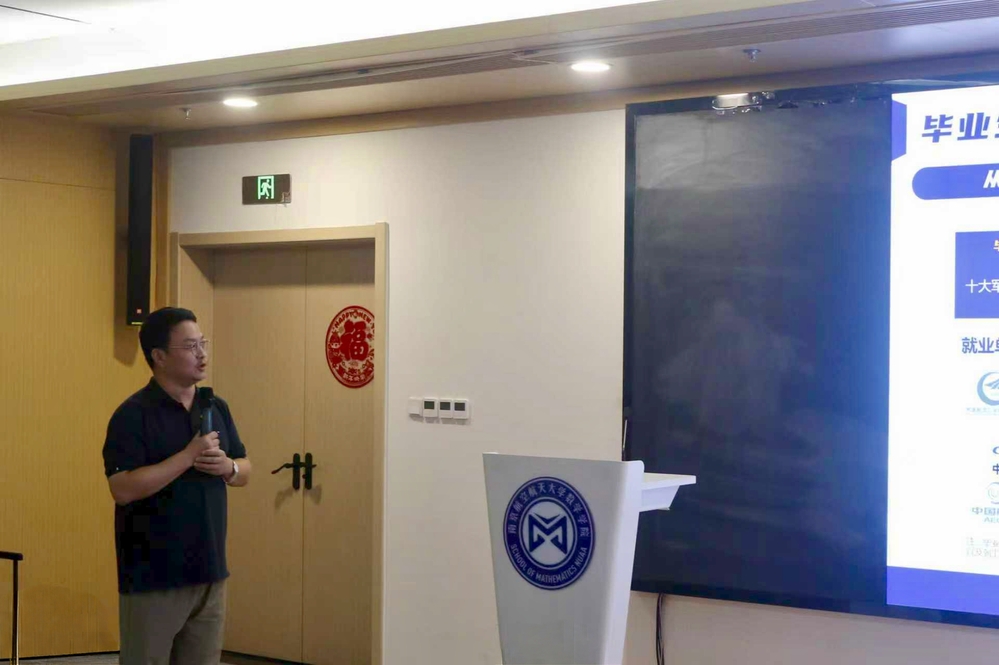 9 月 2日下午,英国365公司官网在将军路校区主楼12001 报告厅举办“数熠新辉,逐梦研途”2025级研究生新生见面会。学院党委副书记王亚鹏、副院长徐江、数学系主任周良强、计算科学系主任龚荣芳、研究生教务员鲁晓林,以及2025级全体研究生参加会议,紫金山实验室人事部副部长闻然受邀到场为新生讲授研究生开学第一课。会议由学院团委书记、研究生辅导员康怡宁主持。