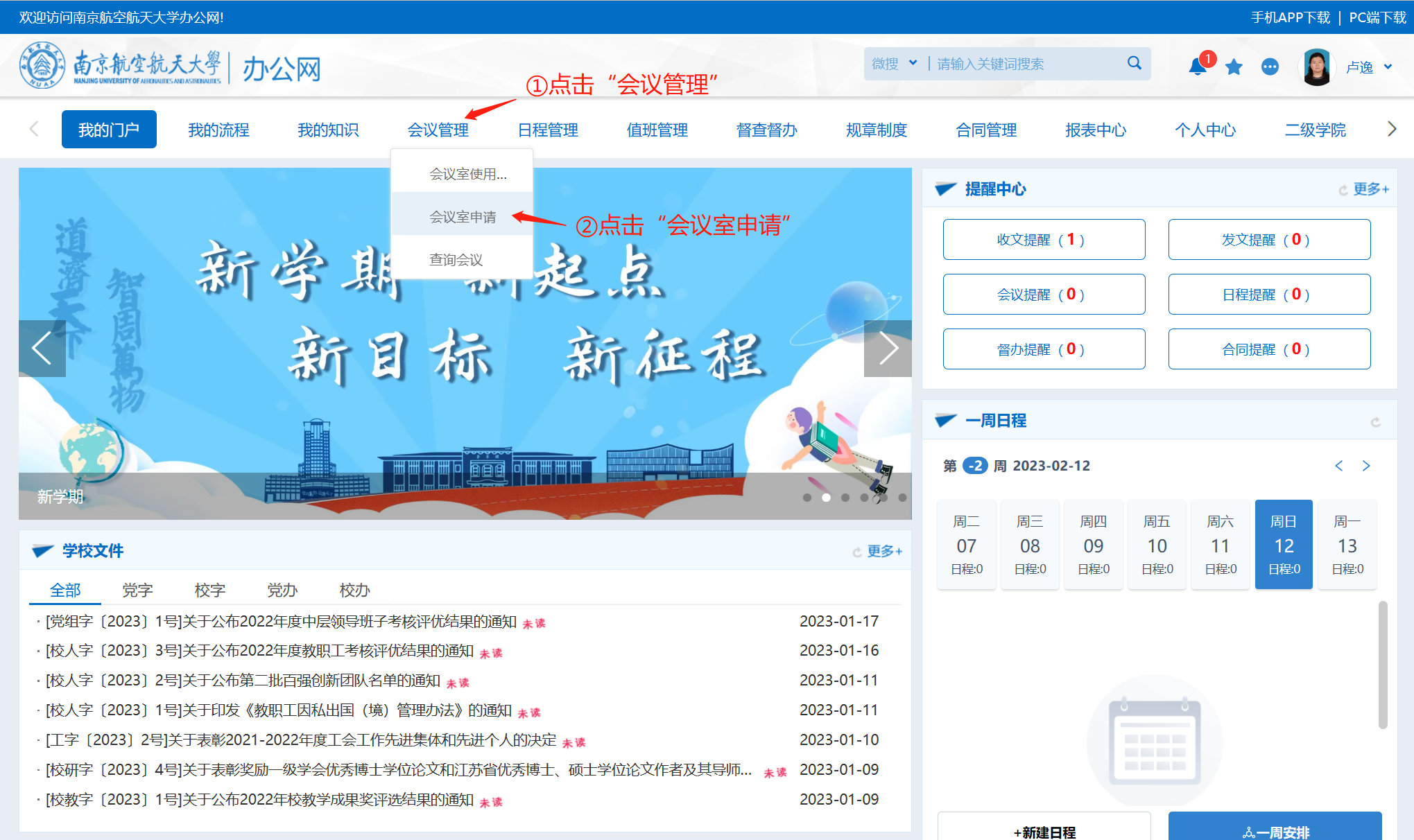 步骤①:打开学院官网,网址:math.nuaa.edu.cn。或登录OA系统,网址:oas.nuaa.edu.cn,账号为统一身份认证账号。